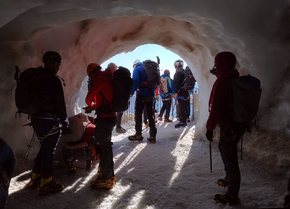 Photos de l'ascension de l'éperon Frendo, en face Nord de l'aiguille du Midi,