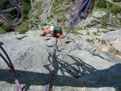 Huit longueurs d'escalade pour 210m (?), beaucoup de 6a obligatoire + 1 pas de 6b ou A0