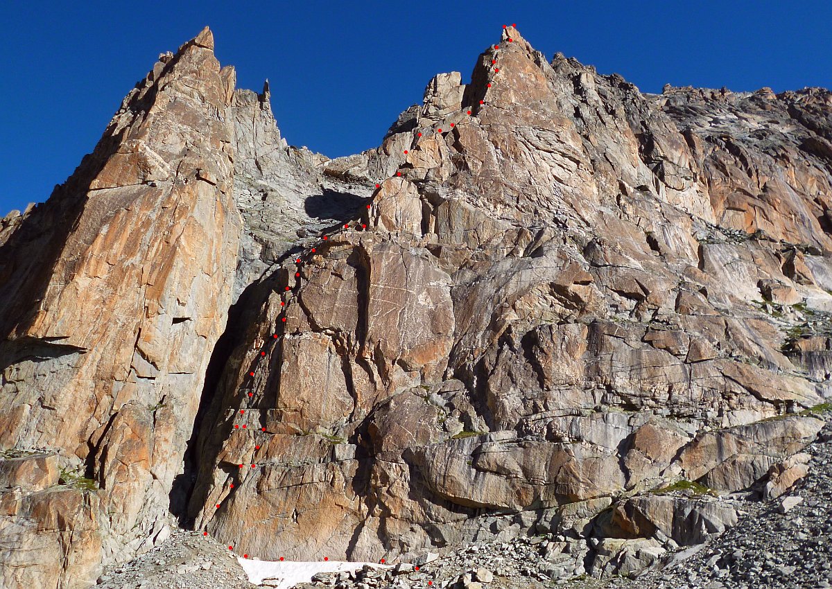 Très belle arête de granite, un granite exceptionnel. Pas très longue, très proche du refuge, bien assurée/assurable