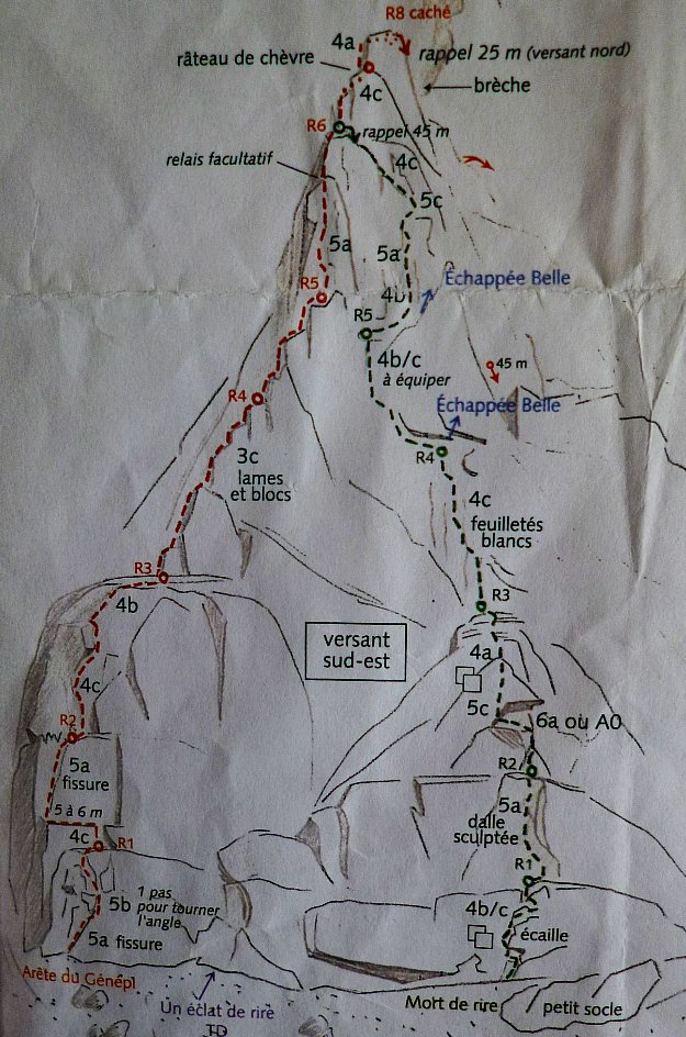 Escalade de l'aiguille du Génépy ou Genepi au dessus du refuge d'Argentière par l'arète Sud