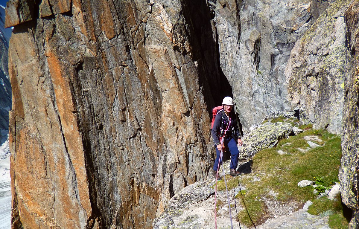 Escalade de l'aiguille du Génépy ou Genepi au dessus du refuge d'Argentière par l'arète Sud