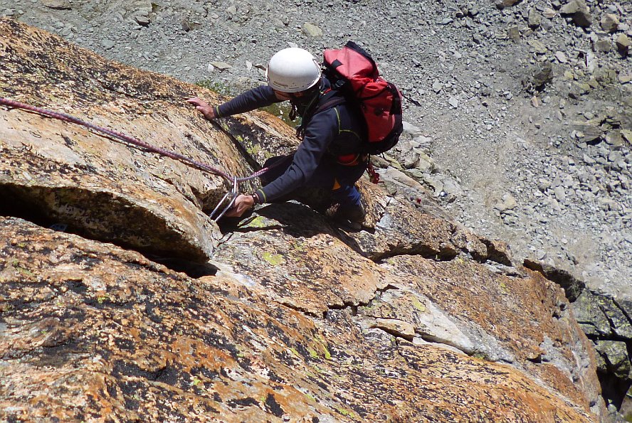 Très belle arête de granite, un granite exceptionnel. Pas très longue, très proche du refuge, bien assurée/assurable