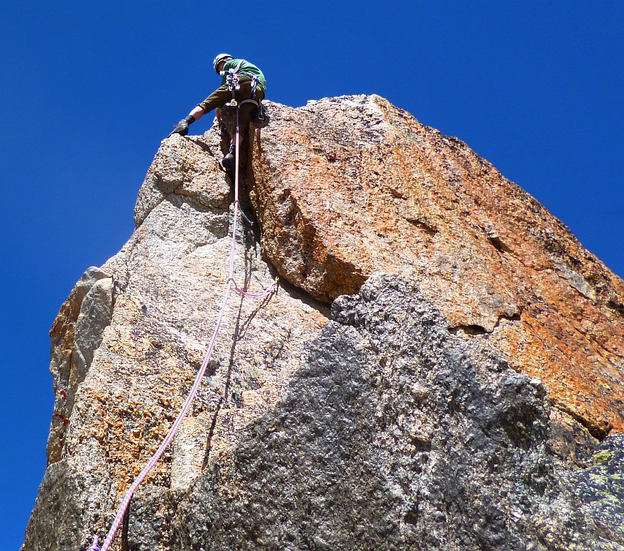 Très belle arête de granite, un granite exceptionnel. Pas très longue, très proche du refuge, bien assurée/assurable