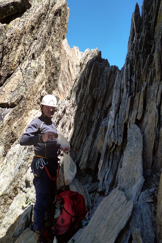 Escalade de l'aiguille du Génépy ou Genepi au dessus du refuge d'Argentière par l'arète Sud
