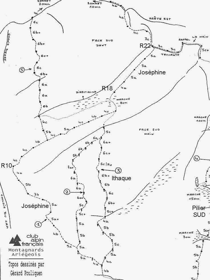 Face Sud, 700m (déniv) 1000m (escalade) 26-30 L, 5b D