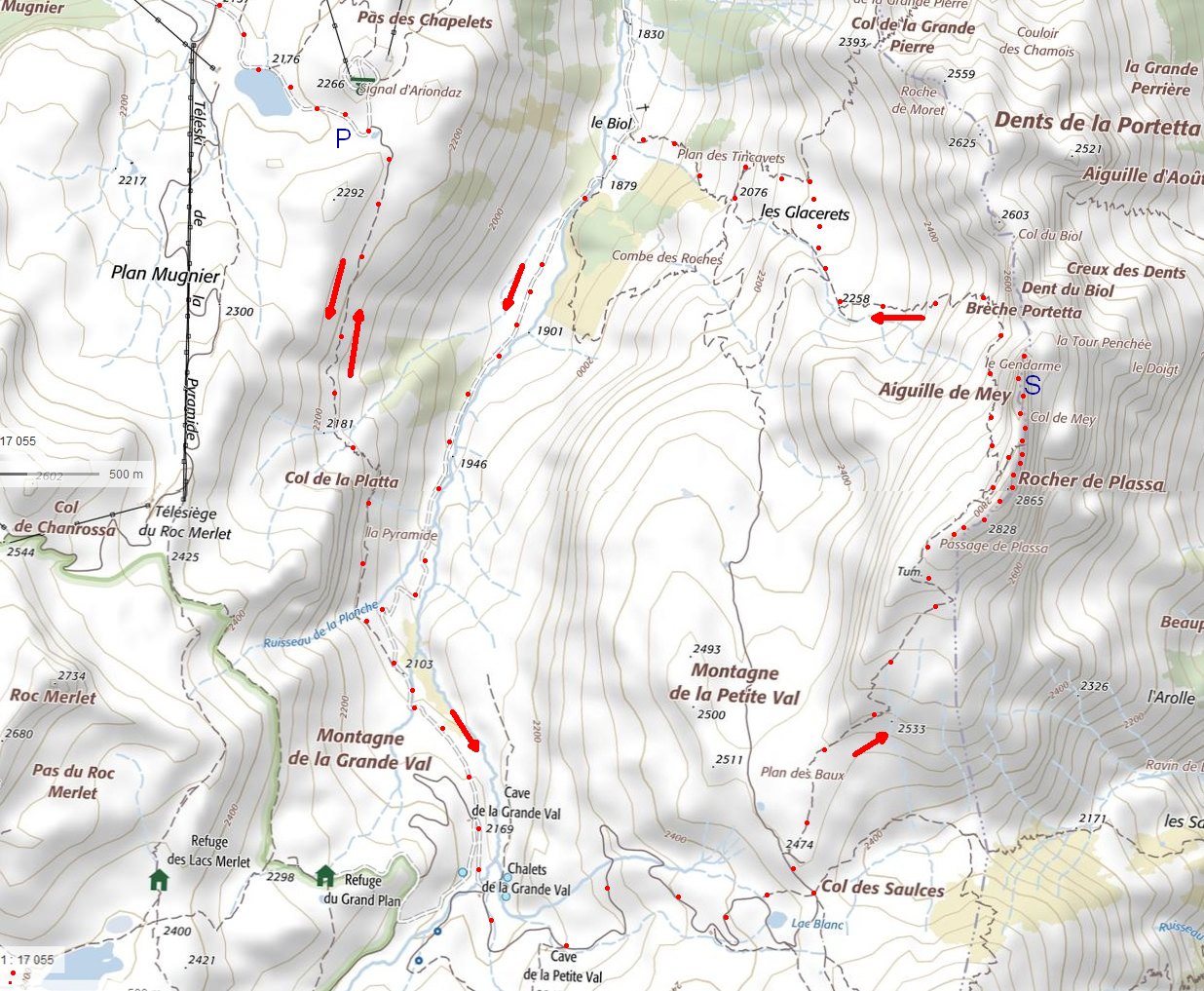 Escalade facile calcaire: aiguille de Mey, traversée rochers Plassa