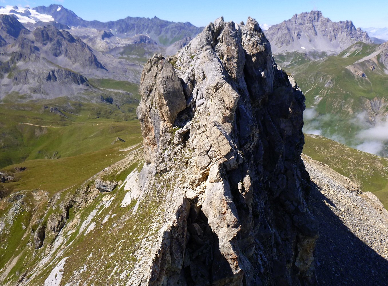 Escalade facile calcaire: aiguille de Mey, traversée rochers Plassa