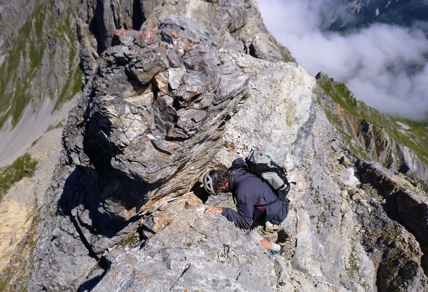Escalade facile calcaire: aiguille de Mey, traversée rochers Plassa