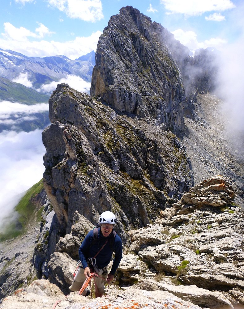 Escalade facile calcaire: aiguille de Mey, traversée rochers Plassa