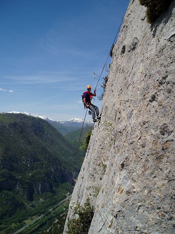 Très bon rocher calcaire, escalade falaise agréable, belle vue sur les Pyrénées ariégeoises enneigées