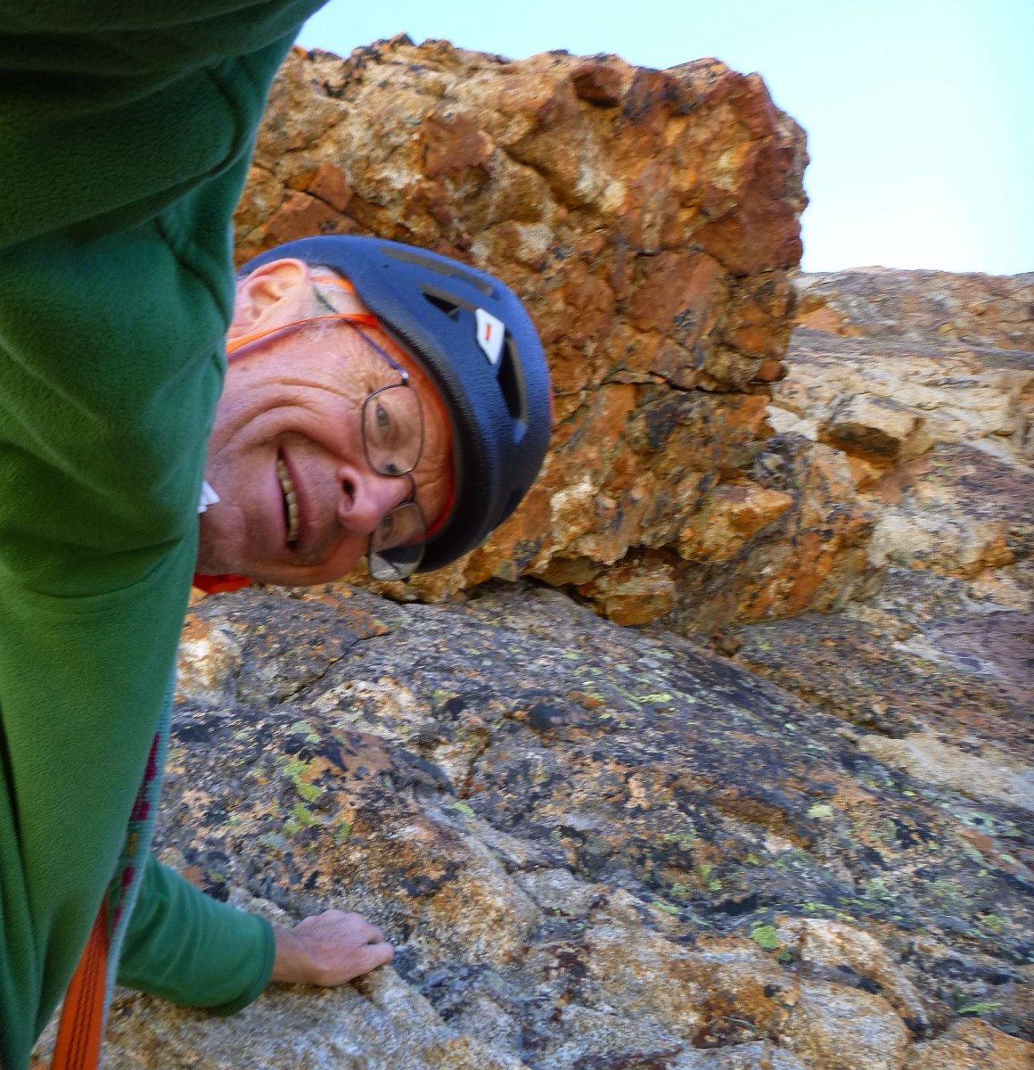 Escalade face Ouest tête du Rouget, voie Centrale Parat, TD- non équipée. Denis Corpet et Noël Dupré la Tour, 4 aout 2017. Refuge du Soreiller, les Etages, Massif des Ecrins Oisans, Isère, France