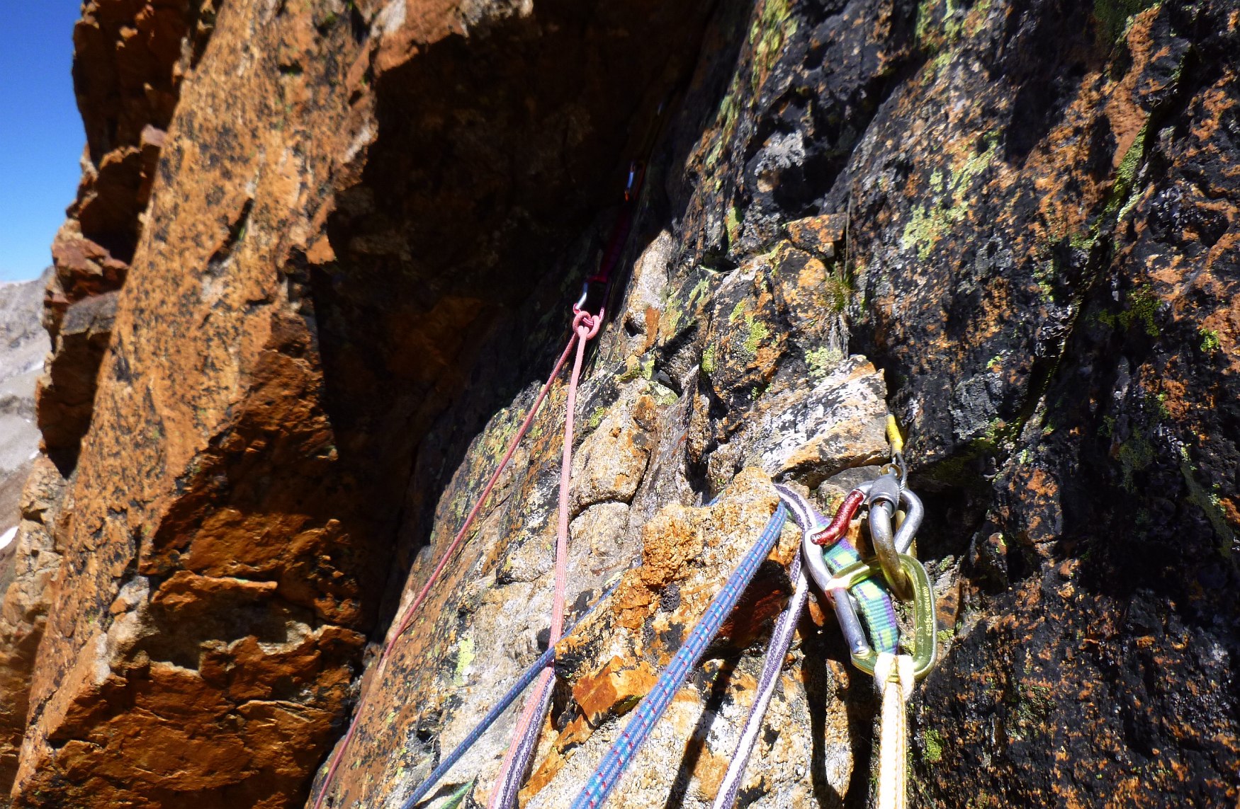 Escalade face Ouest tête du Rouget, voie Centrale Parat, TD- non équipée. Denis Corpet et Noël Dupré la Tour, 4 aout 2017. Refuge du Soreiller, les Etages, Massif des Ecrins Oisans, Isère, France