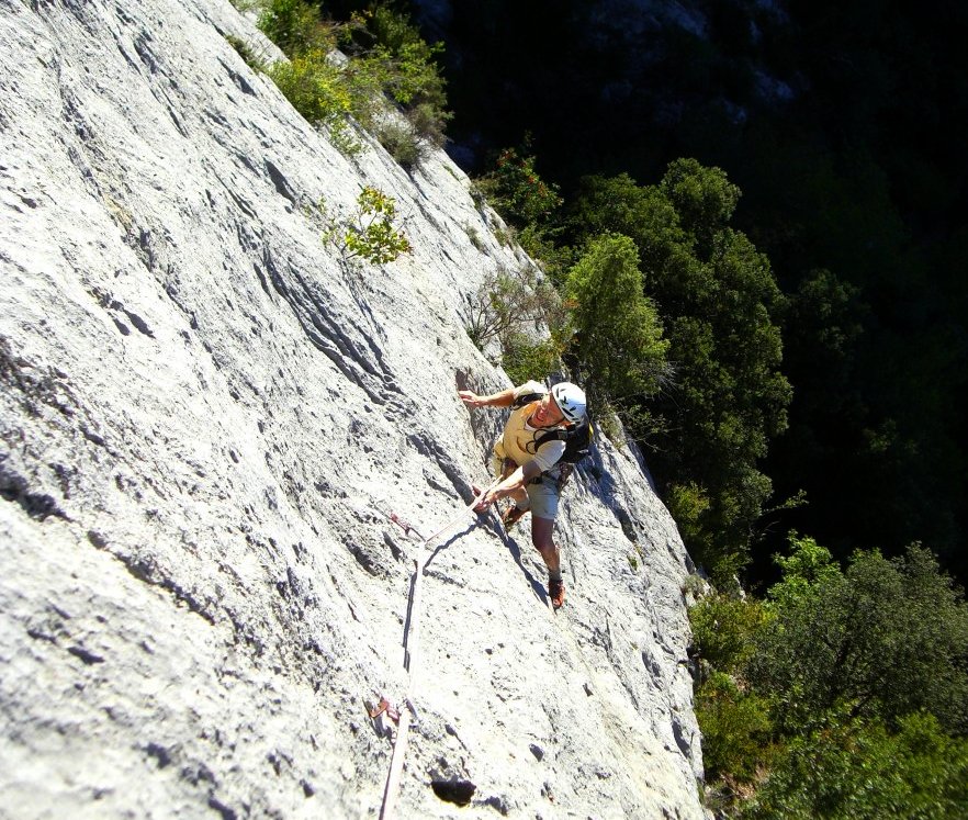12 longueurs dont 5L en 6a et qq pas de 6b. Calcaire de rêve, dalles et dièdres, plein Sud