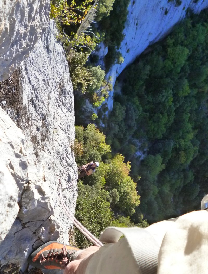 12 longueurs dont 5L en 6a et qq pas de 6b. Calcaire de rêve, dalles et dièdres, plein Sud