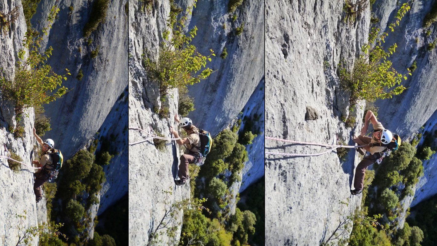 12 longueurs dont 5L en 6a et qq pas de 6b. Calcaire de rêve, dalles et dièdres, plein Sud
