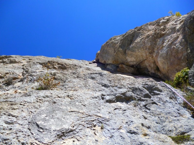 12 longueurs dont 5L en 6a et qq pas de 6b. Calcaire de rêve, dalles et dièdres, plein Sud
