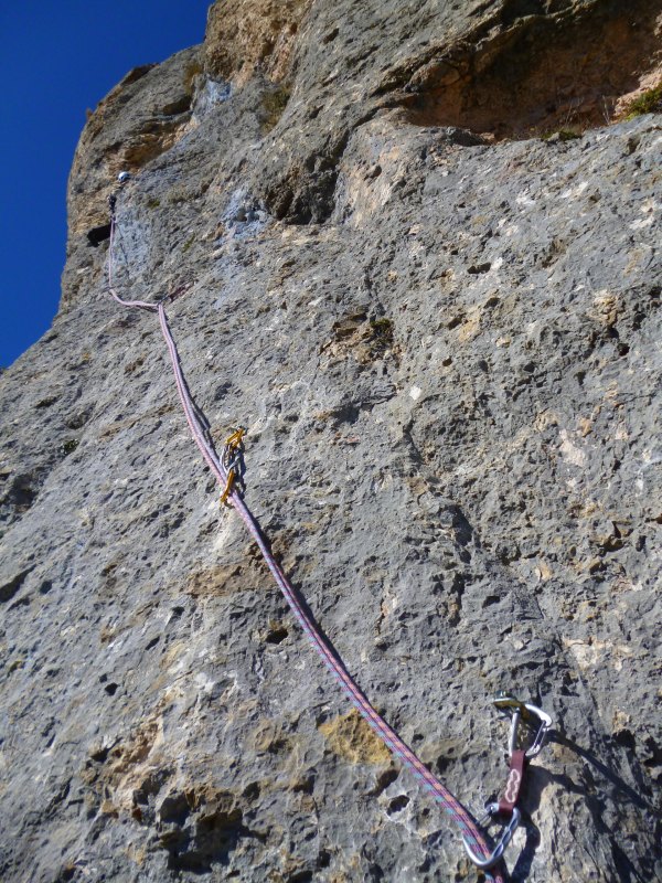 12 longueurs dont 5L en 6a et qq pas de 6b. Calcaire de rêve, dalles et dièdres, plein Sud