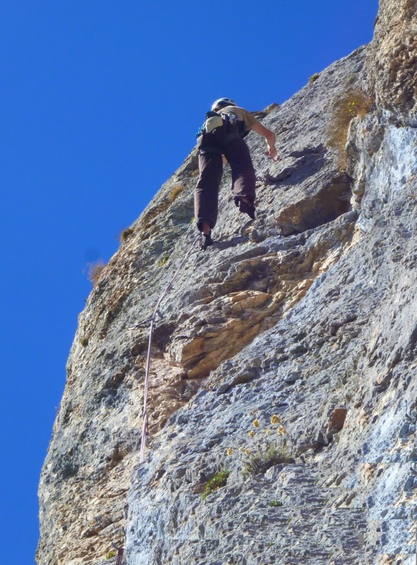 12 longueurs dont 5L en 6a et qq pas de 6b. Calcaire de rêve, dalles et dièdres, plein Sud