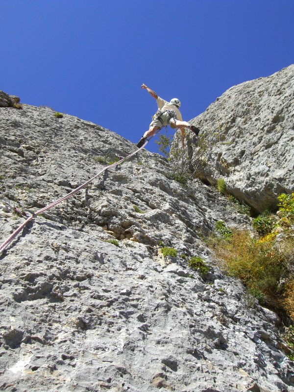 12 longueurs dont 5L en 6a et qq pas de 6b. Calcaire de rêve, dalles et dièdres, plein Sud