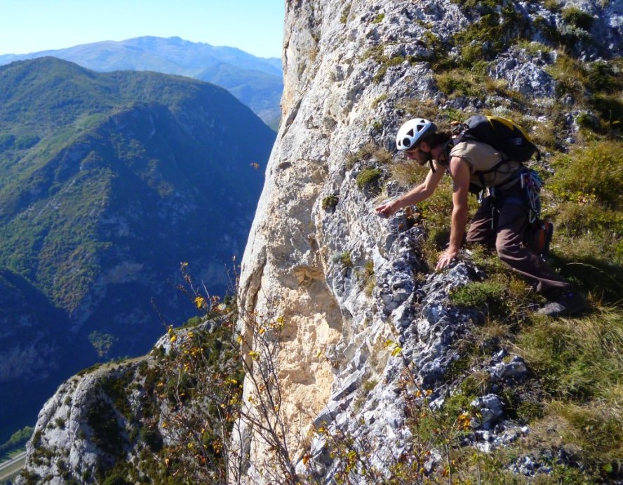 12 longueurs dont 5L en 6a et qq pas de 6b. Calcaire de rêve, dalles et dièdres, plein Sud