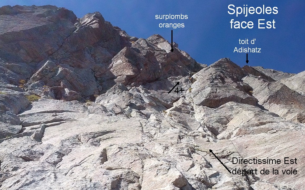 Voie en face Est du pic des Spijeoles (et pas Spigeoles ni Spijol ni d'Espijol ni d'Espigeol)