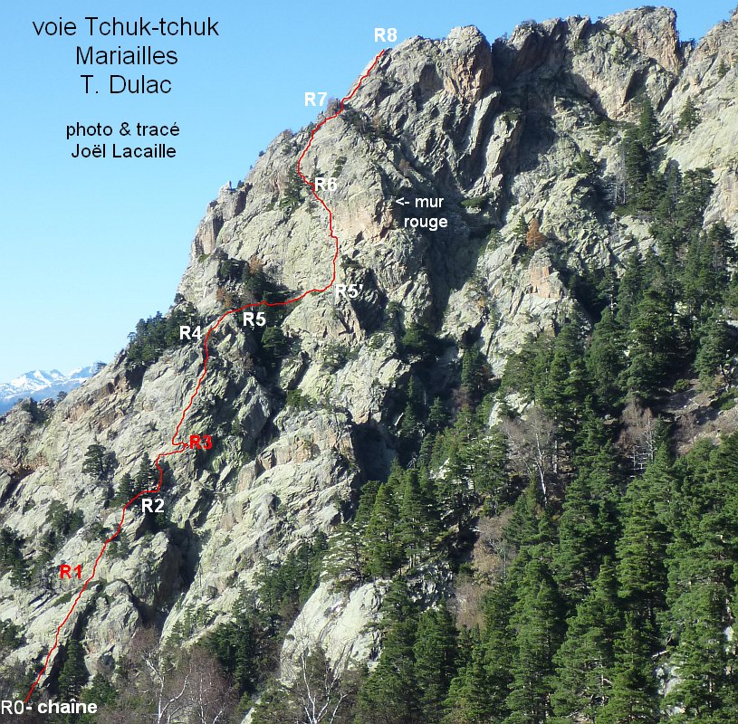 Tracé voie Tchuk-tchuk, Paroi SE Mariailles