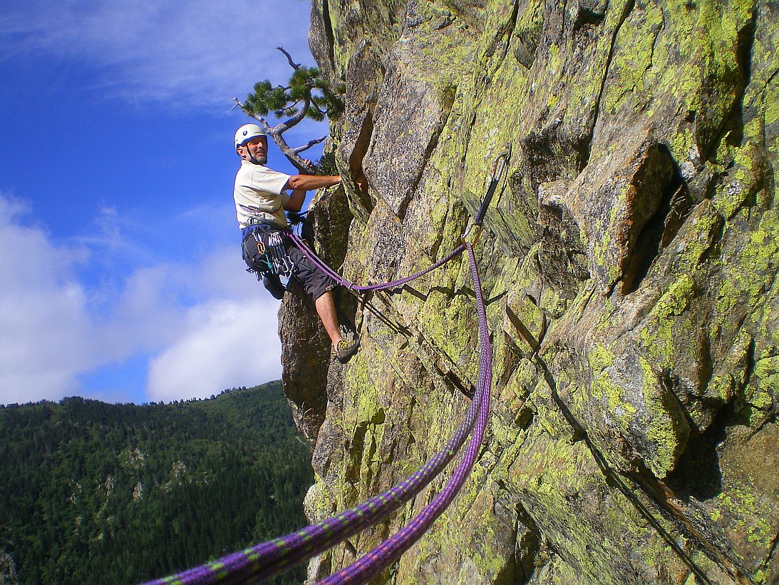 Escalade de la voie Tchuk-tchuk, 9 longueurs dont deux en 6a
