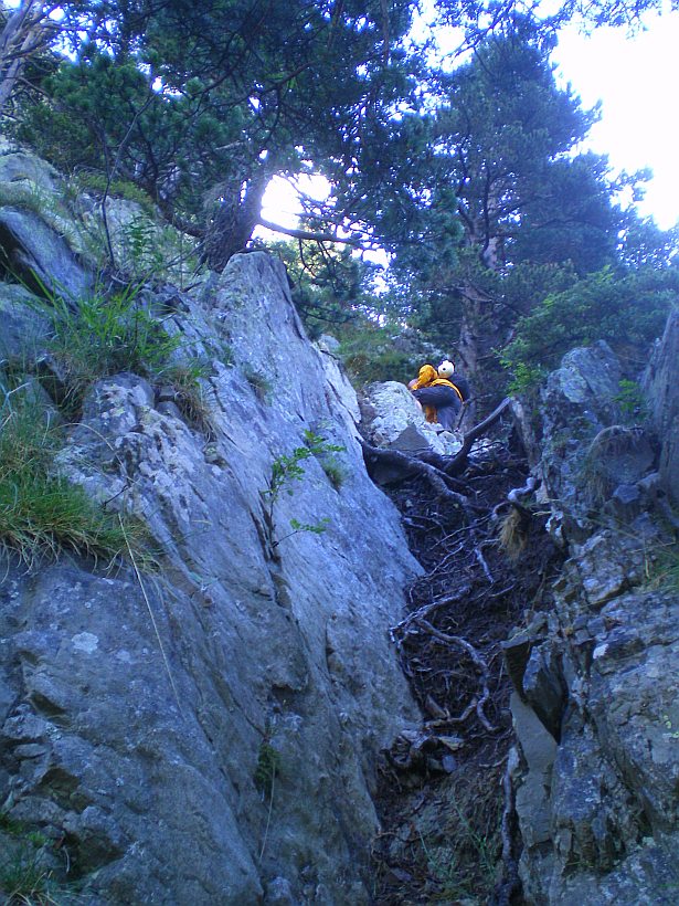 Escalade de la voie Tchuk-tchuk, 9 longueurs dont deux en 6a