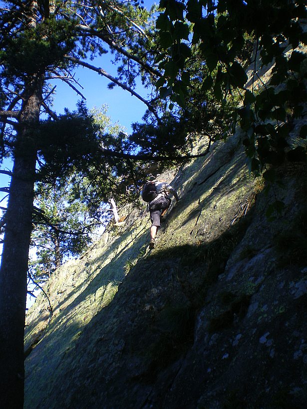 Escalade de la voie Tchuk-tchuk, 9 longueurs dont deux en 6a