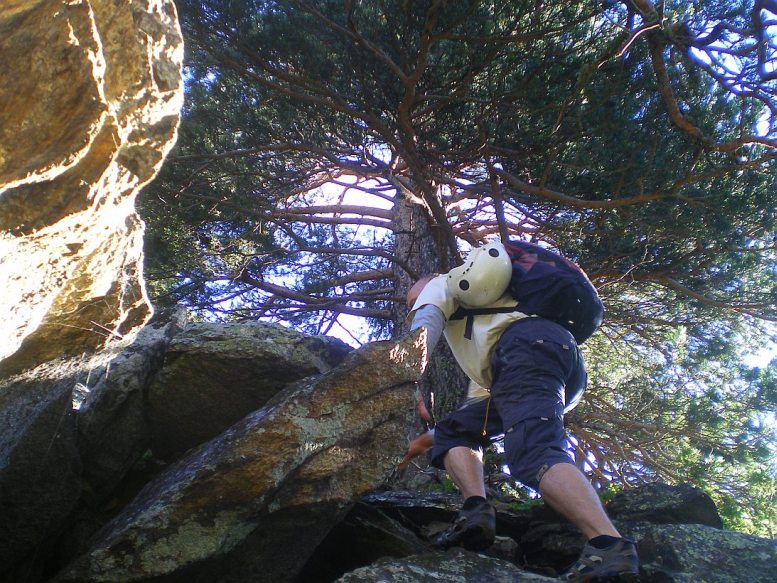 Escalade de la voie Tchuk-tchuk, 9 longueurs dont deux en 6a