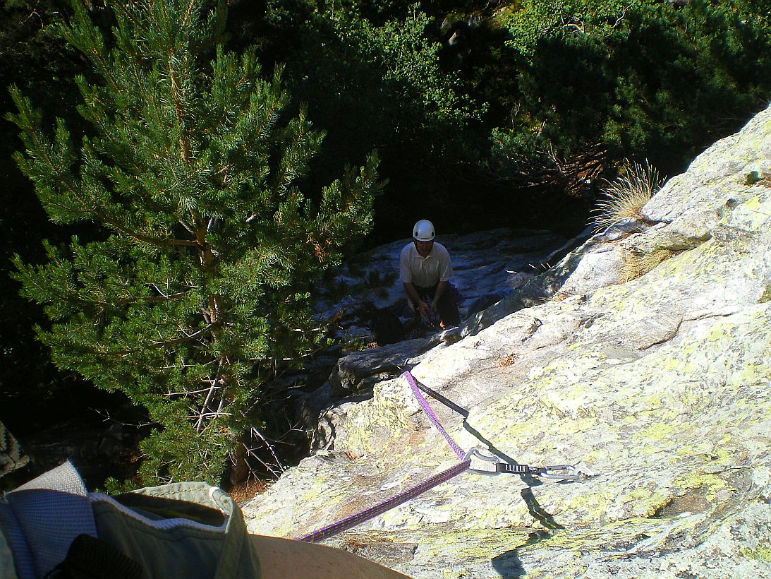 Escalade de la voie Tchuk-tchuk, 9 longueurs dont deux en 6a