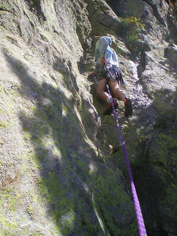 Escalade de la voie Tchuk-tchuk, 9 longueurs dont deux en 6a