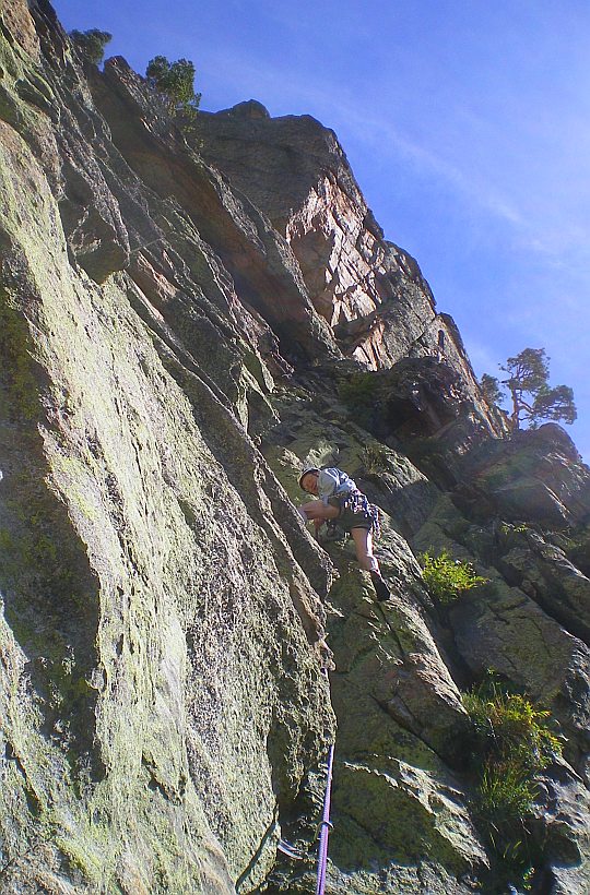 Escalade de la voie Tchuk-tchuk, 9 longueurs dont deux en 6a