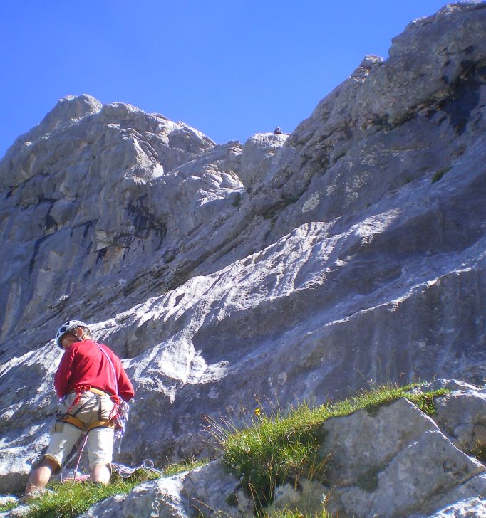 Très belle voie au soleil sur un excellent calcaire. Des ressauts coupés par de belles plate-formes herbues. Equipement béton par Michel Piola (spits). Descente par un bon couloir herbu, après un rappel de 50m pour descendre "la bougie" finale, et un rappel de 45m en bas du couloir pour rejoindre les sacs laissés à l'attaque