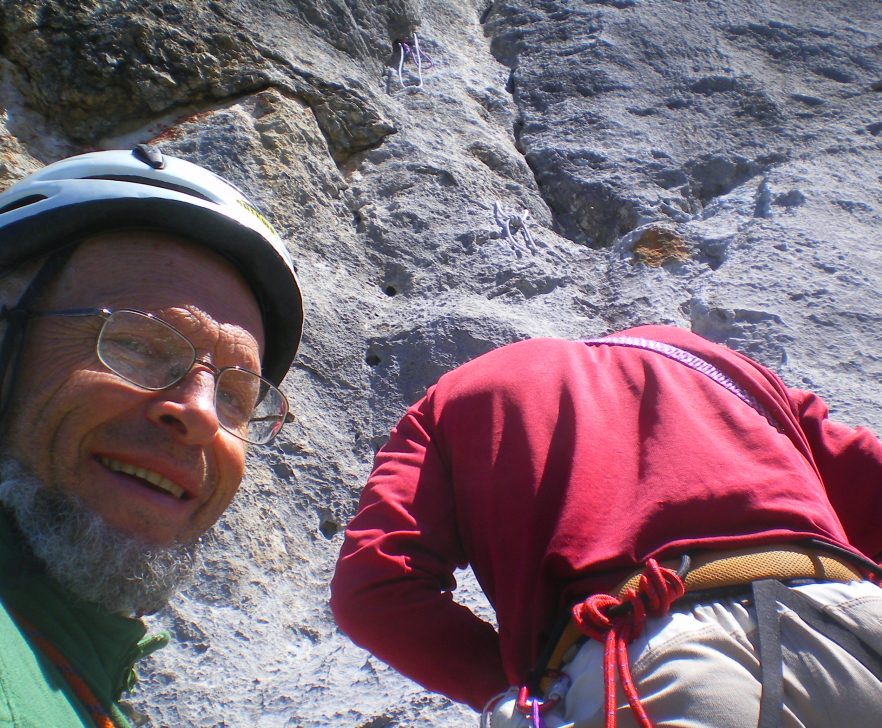 Denis Corpet & Noël Dupré la Tour escaladent la voie "Tonneau des Danaïdes", arête Sud-Ouest de la Mamule, dans les Aravis. TD sup 10 longueurs, pas mal de 6a sur un calcaire de rêve. 7 aout 2010.