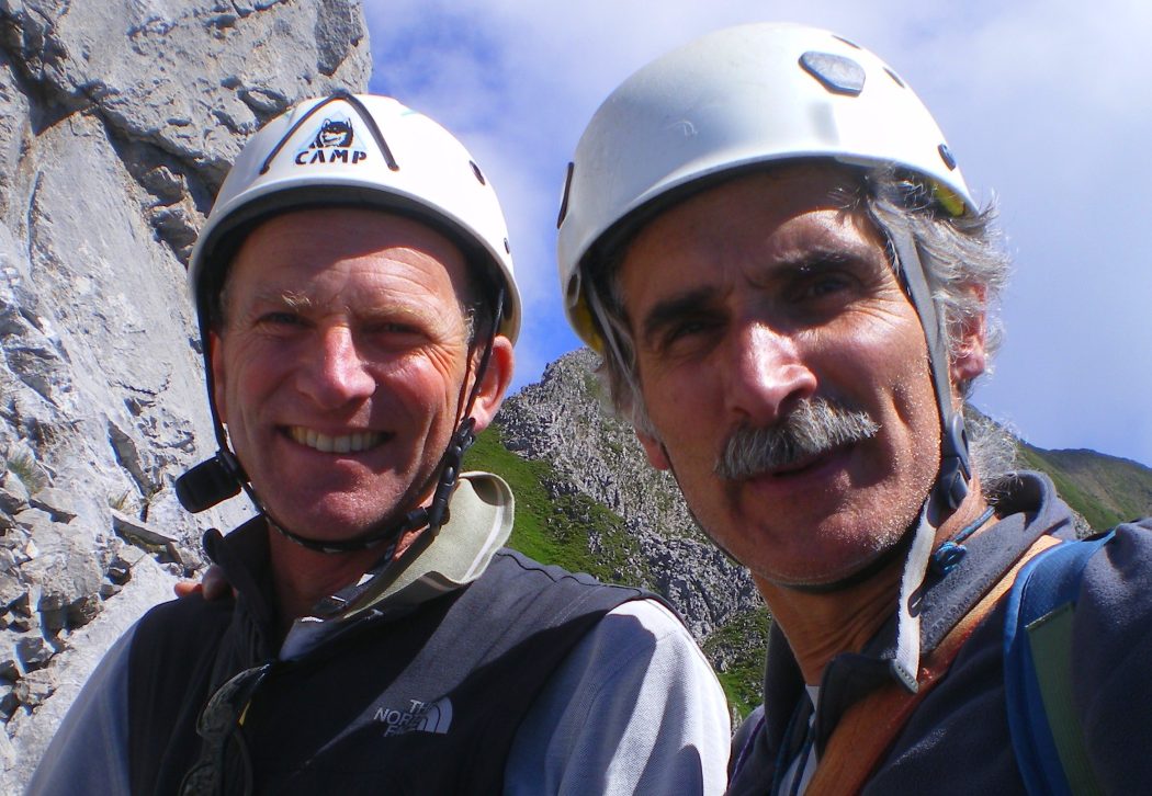 Denis Corpet & Noël Dupré la Tour escaladent la voie "Tonneau des Danaïdes", arête Sud-Ouest de la Mamule, dans les Aravis. TD sup 10 longueurs, pas mal de 6a sur un calcaire de rêve. 7 aout 2010.