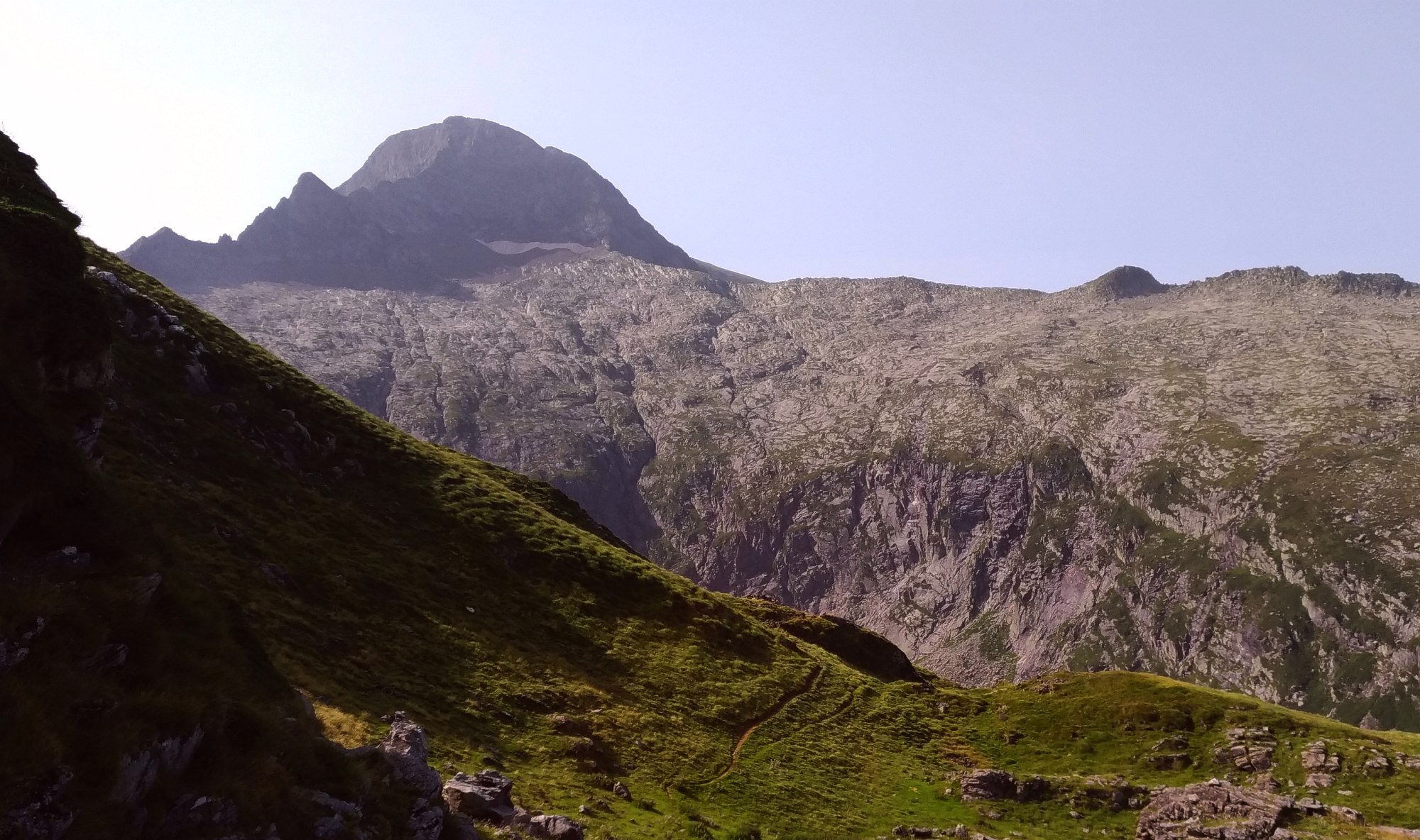 Longue escalade AD- au milieu d'une immense randonnée en Ariège, Pyrénées