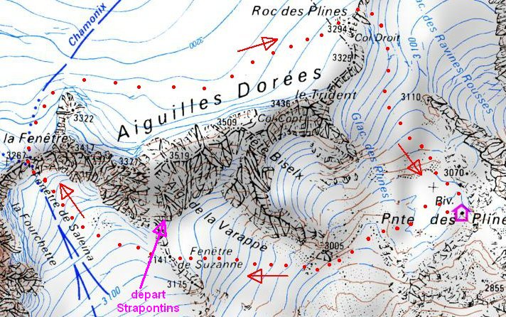 - Non, il faut descendre tout en bas sous l'arète qui descend de l'aiguille penché