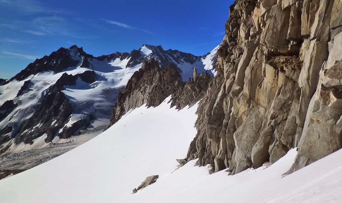 Massif du Mont Blanc, coté Suisse, aiguilles dorées, face Sud, 23 Juillet 2014, Noël Dupré la Tour et Denis Corpet