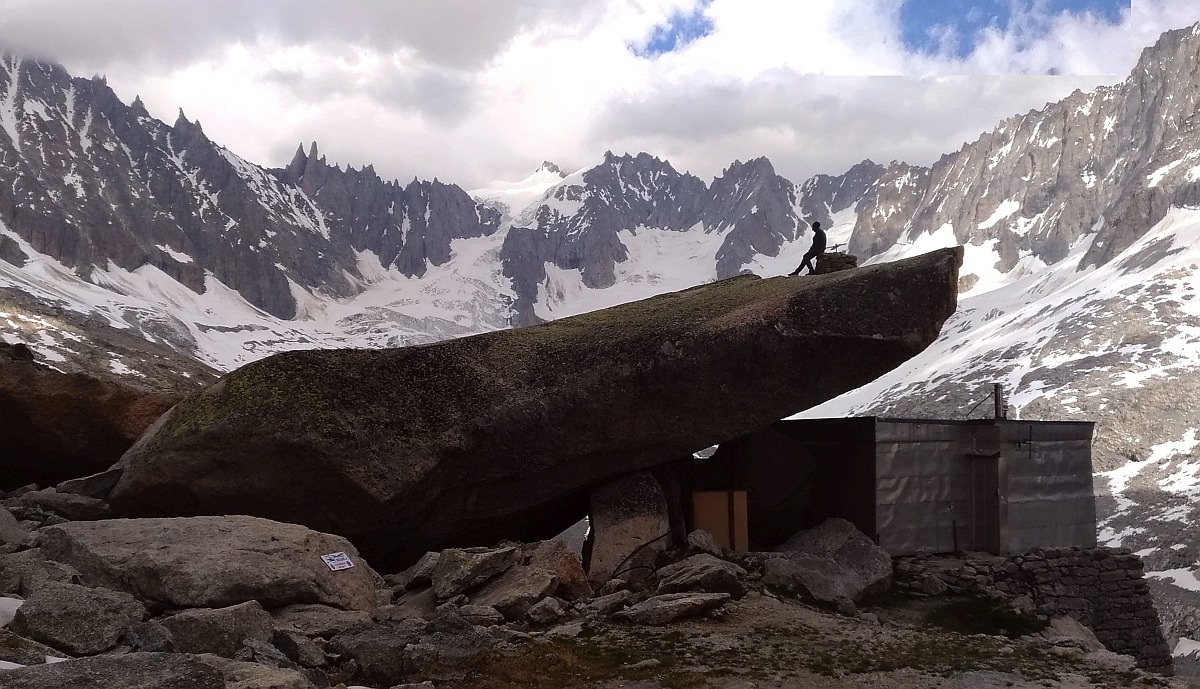 Cette arête m'avait semblé débonnaire en descendant de la Verte escaladée par l'arête Sans Nom avec Noel. En ce mois de Juin de canicule sur une arête couverte de neige foireuse, nous l'avons touvée difficile