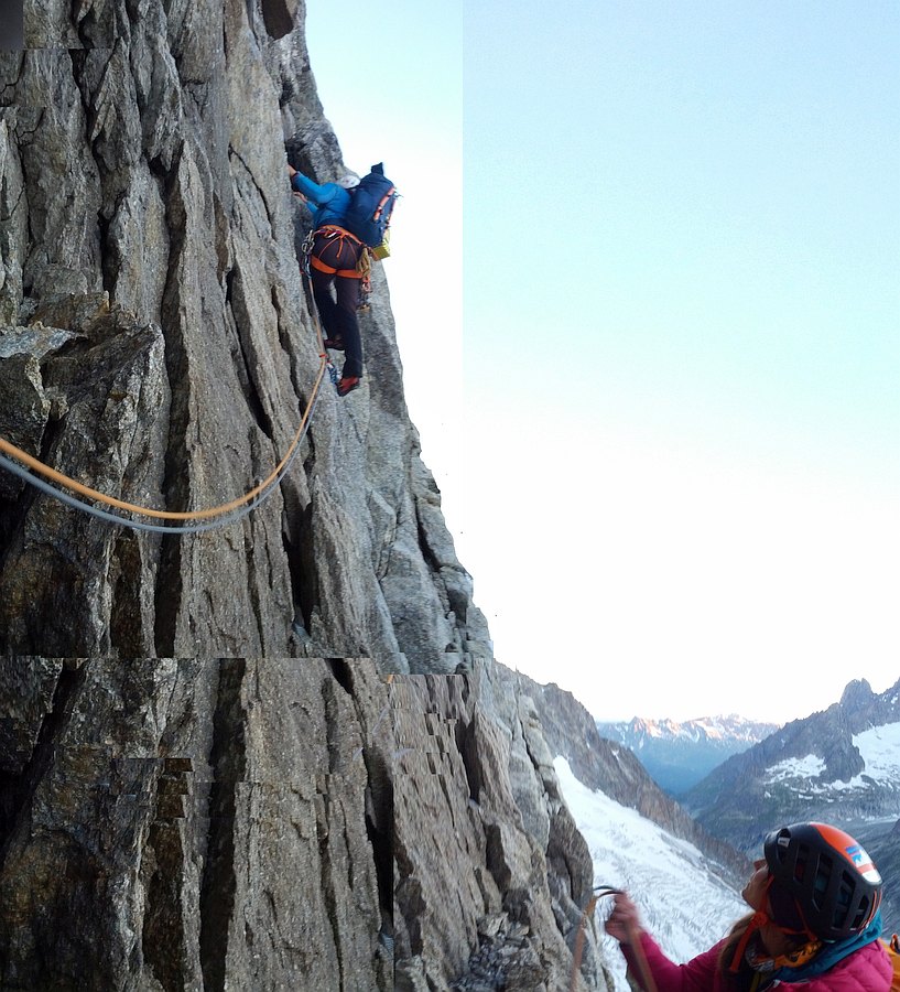 Climbing the Walker spur, Cassin route, in Grandes-Jorasses North Face.