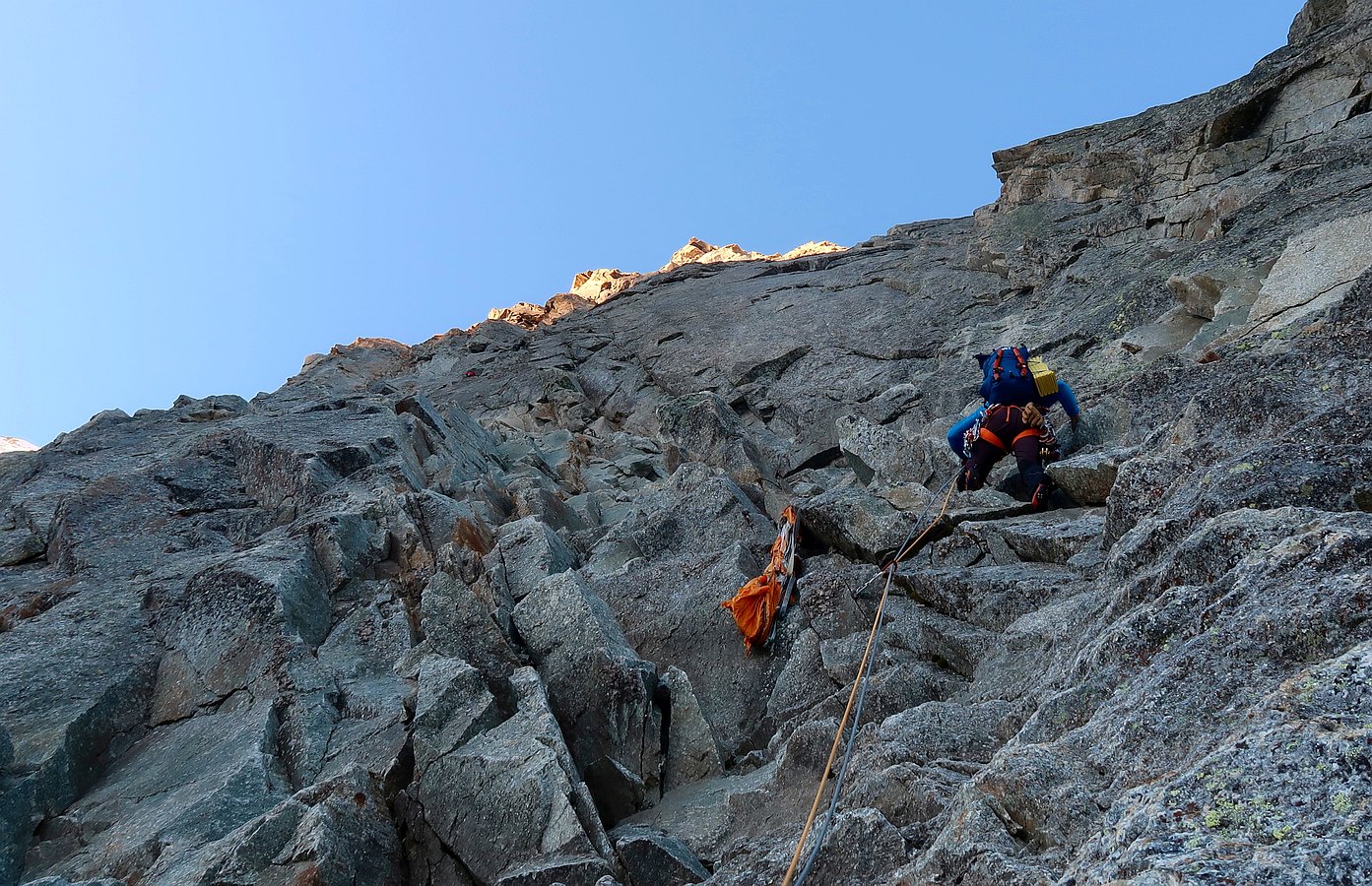 Climbing the Walker spur, Cassin route, in Grandes-Jorasses North Face.