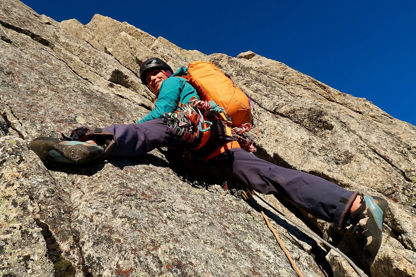 Climbing the Walker spur, Cassin route, in Grandes-Jorasses North Face.
