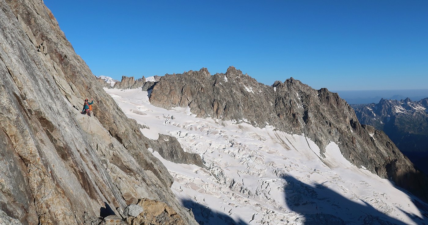 Climbing the Walker spur, Cassin route, in Grandes-Jorasses North Face.