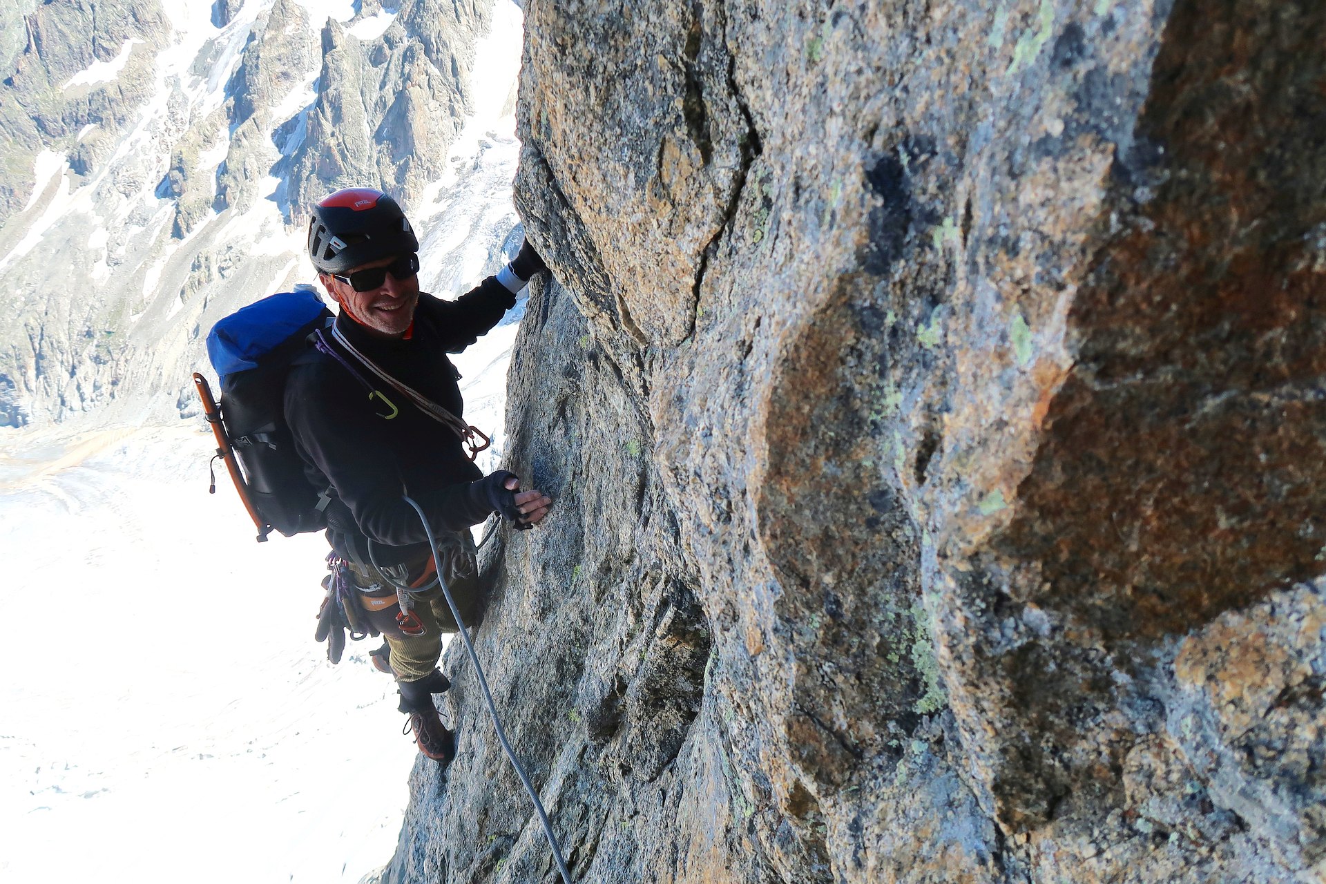 Climbing the Walker spur, Cassin route, in Grandes-Jorasses North Face.
