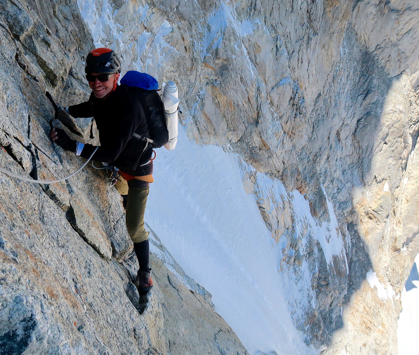 Climbing the Walker spur, Cassin route, in Grandes-Jorasses North Face.