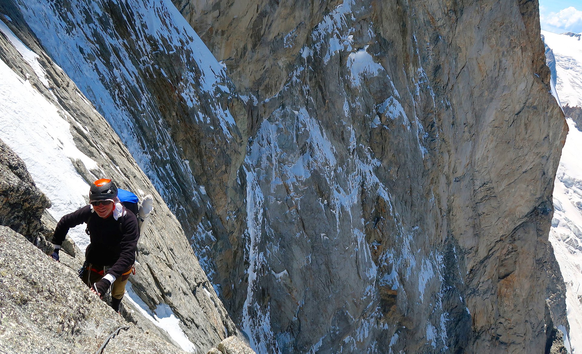 Climbing the Walker spur, Cassin route, in Grandes-Jorasses North Face.
