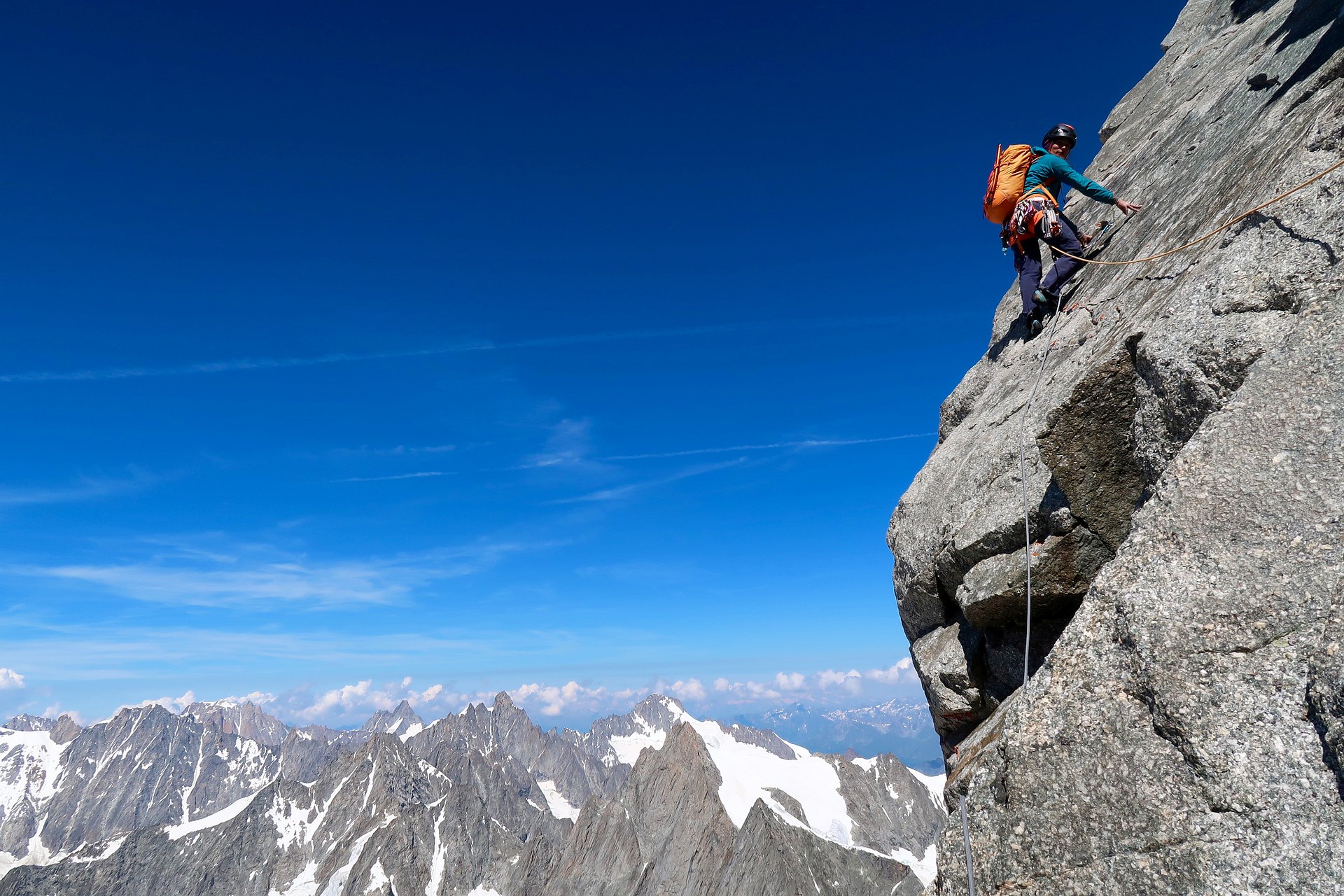 Climbing the Walker spur, Cassin route, in Grandes-Jorasses North Face.