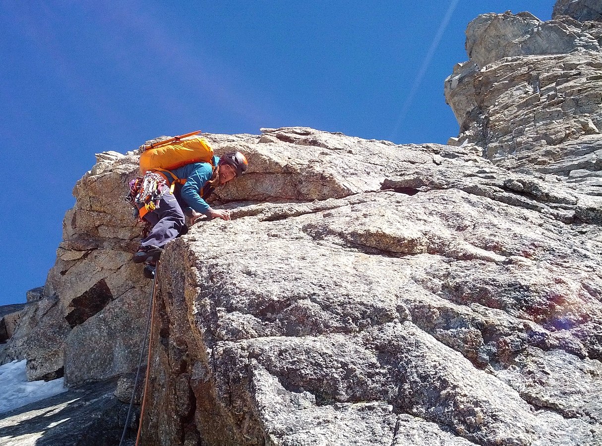 Climbing the Walker spur, Cassin route, in Grandes-Jorasses North Face.