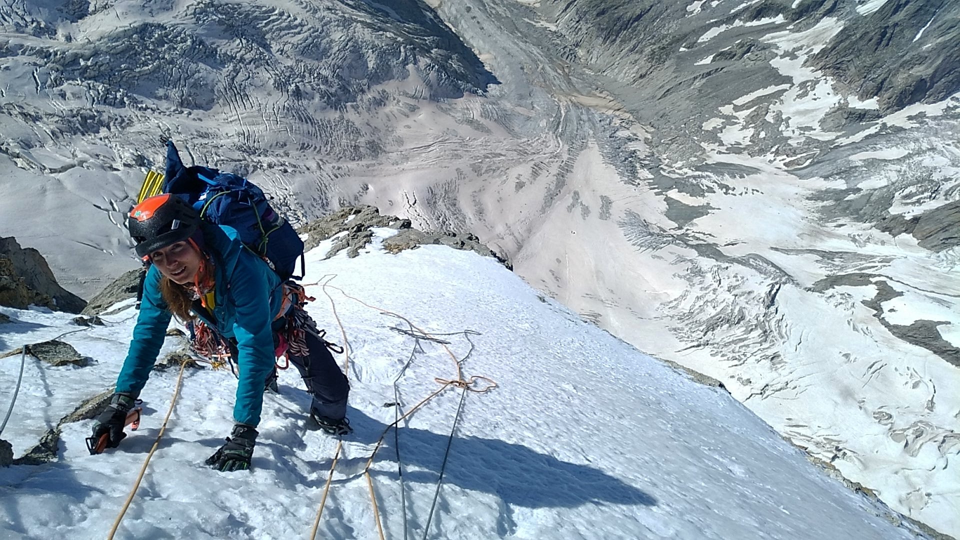and beginning the way down: Bivi at approx. 4050m ; July 19, descent to Boccalate and Planpincieux, Italy